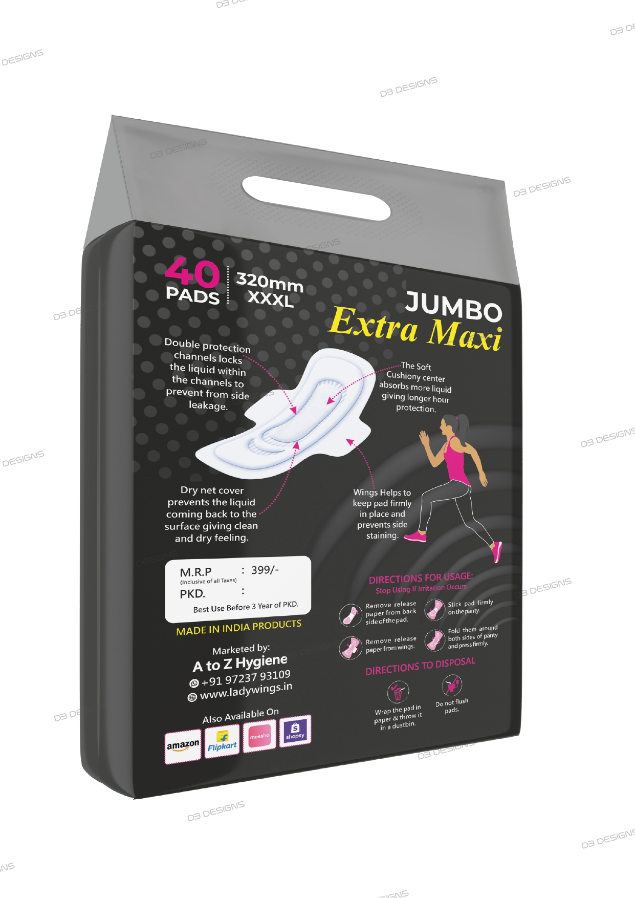 Sanitary Pads Jumbo Extra Maxi 320mm Jumbo size (1 Packet , 40 Piece )